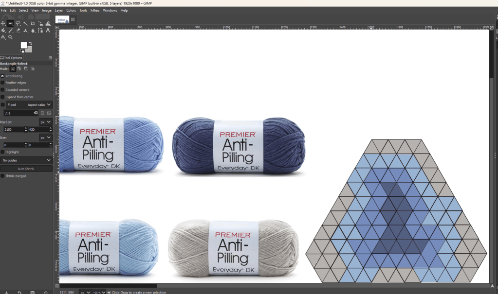 The second WiP is the second baby blanket that’s in the planning phase. I’ll be using the White Lily Blanket pattern by Elena Fedotova I mentioned last month with a few tweaks. I’ll be taking inspiration from the geode on the left! So instead of being a symmetrical square type shape the original pattern makes I’m going for more of a teardrop. To plan out the color changes I created a grid in GIMP a free image manipulation program and then filled in each triangle trying to recreate the geode. I’m working on getting this started tonight so I’m very excited! I think that’s close enough to being a WiP so I’ll add it here!