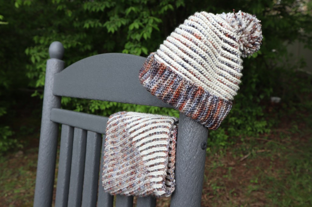 The second FO I have is a crochet beanie using some yarn I’ve had for a bit. I don’t remember the brand. This was a spur of the moment, get me out of my rut, kind of project. It was inspired by the Shadow Stripes Beanie by Kim Guzman. I ended up just doing half-double crochets in the 3rd loop for the full hat which gives it a very brioche look. I also added a reversible pom-pom. Basically I crocheted the last round around a small hair tie. I then made a chain to bridge the hole. This chain is where I attached the pom-pom this way I can push the pom-pom through the hole and make it truly reversible! It actually goes pretty nicely with the knit brioche cowl I finished sometime last year. Thanks to this quick crochet I was able to get out of my slump. Sometimes all you need is a little win to get remotivated.