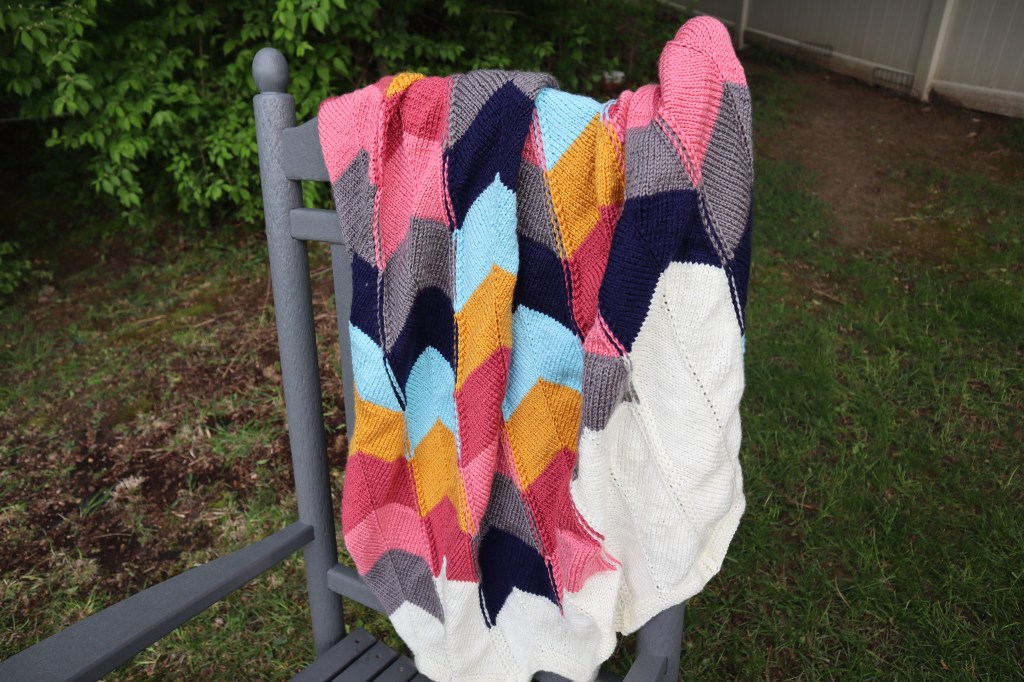 I finished the baby blanket! The Bernat Chevron Panel Knit Baby Blanket was one of my WiPs last month and it’s done! I’m so happy to get this done because even though there was no deadline I felt like I was on the clock. The pattern itself was fun. It balanced a simple mindless knit with just enough intrigue with frequent color changes to keep me going.